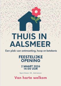 Op 2 maart 2026 start in Aalsmeer het nieuwe initiatief Thuis in Aalsmeer. Een laagdrempelige ontmoetingsplek waar inwoners van alle leeftijden welkom zijn om anderen te ontmoeten.